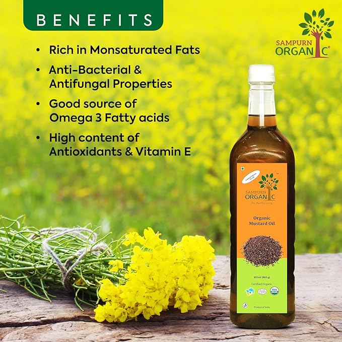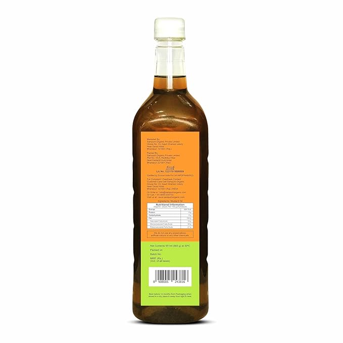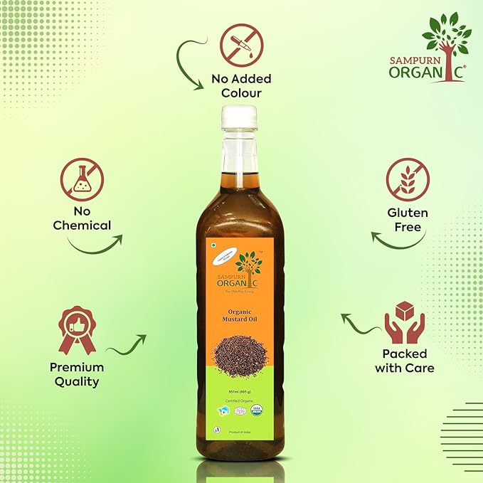- GMO-Free Assurance: We are committed to offering mustard oil that is free from genetic engineering. Genetically modified organisms (GMOs) can raise concerns about their potential effects on health and the environment. By choosing Sampurn Organic Mustard Oil, you can be confident that you are avoiding GMOs and making a responsible choice.