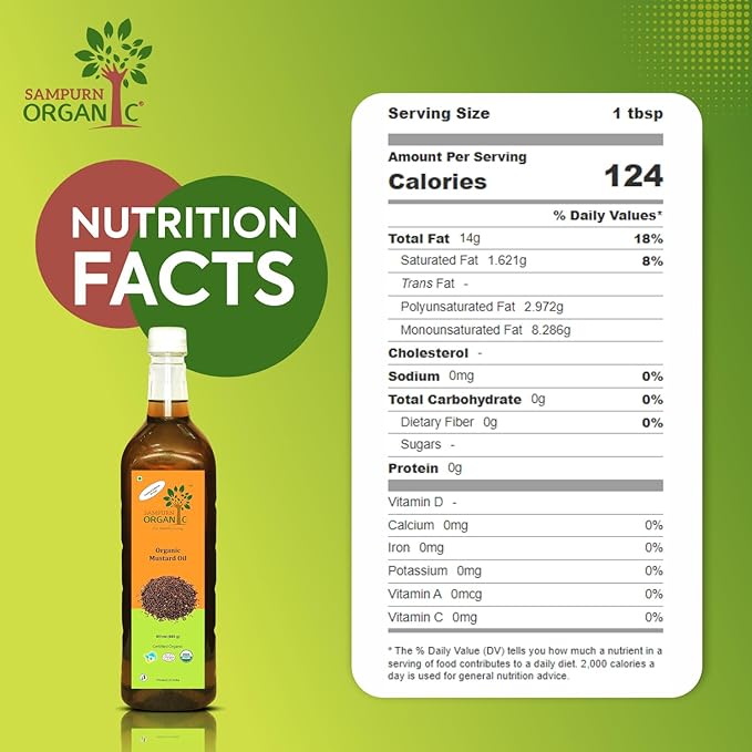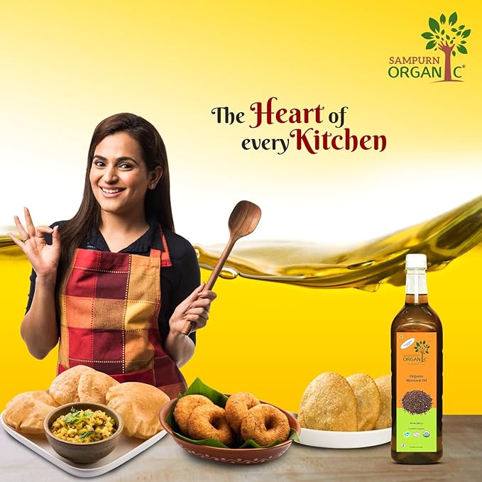 - Cold-Pressed Purity: Sampurn Organic Mustard Oil is a premium culinary delight known for its cold-pressed purity. The cold-pressing method retains the natural flavors, aroma, and nutrients of the mustard seeds, ensuring you receive oil in its most pristine and unaltered form.