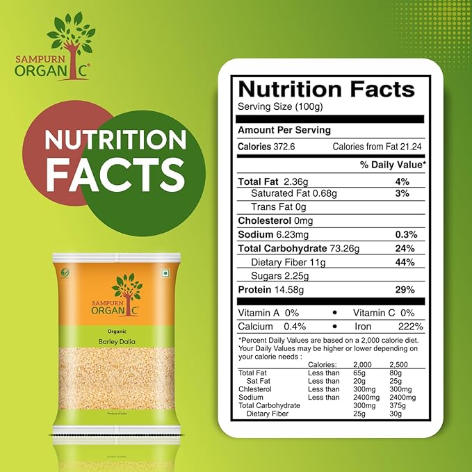 - Pure and Natural Origin: Our organic barley dalia is sourced from 100% organic barley crops that are cultivated in a natural and sustainable manner. We take pride in offering a product that is free from synthetic chemicals, fertilizers, and pesticides. This ensures that you receive a wholesome and unadulterated grain that retains its natural goodness.