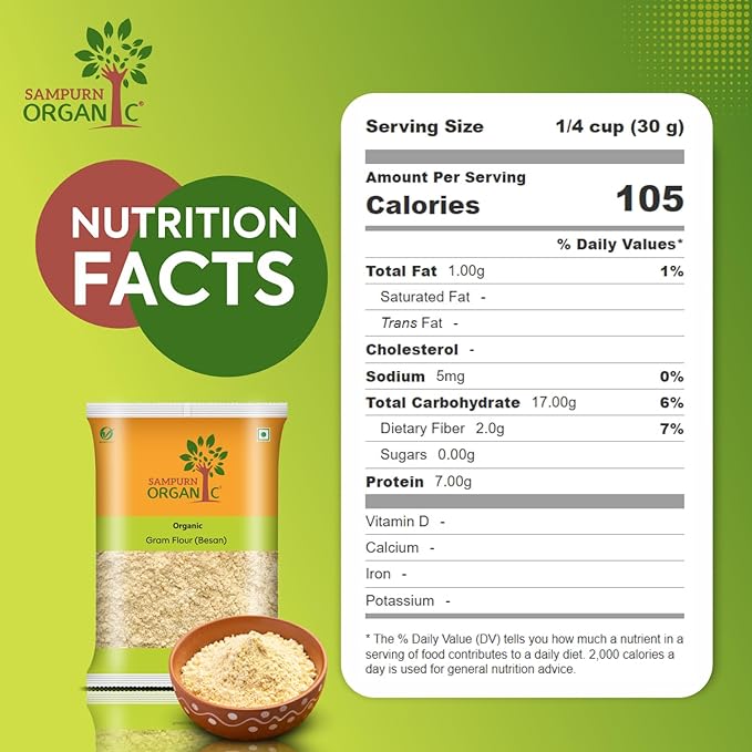- Sampurn Organic Gram Flour 100% Chana Besan 800 Gms (2 Pack of 400gms Each)