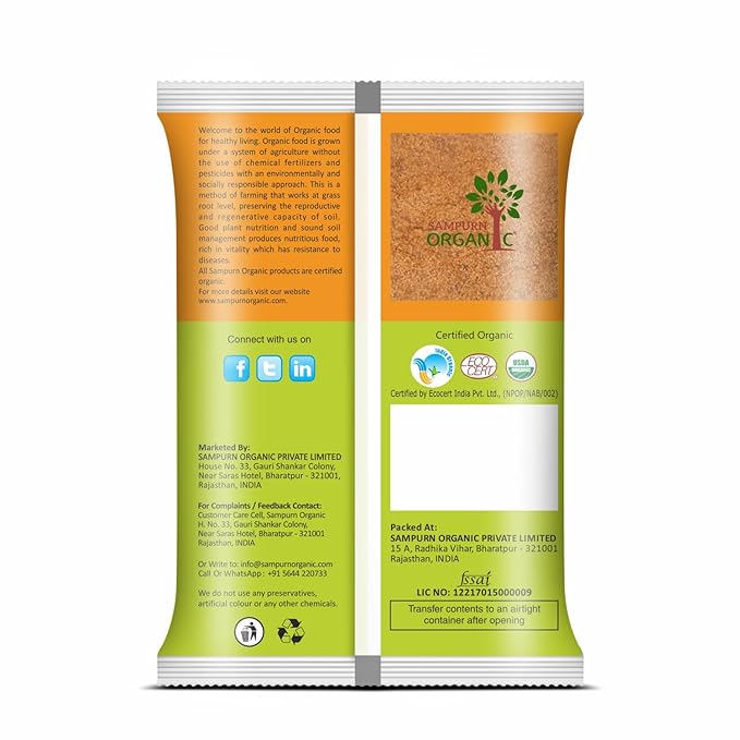 - Certified Organic Purity: Our jaggery powder is certified according to both the U.S. National Organic Program (NOP) and Indian National Program for Organic Production (NPOP) food standards. These certifications provide assurance that our product meets the highest organic farming and processing standards, making it a wholesome choice for conscious consumers.