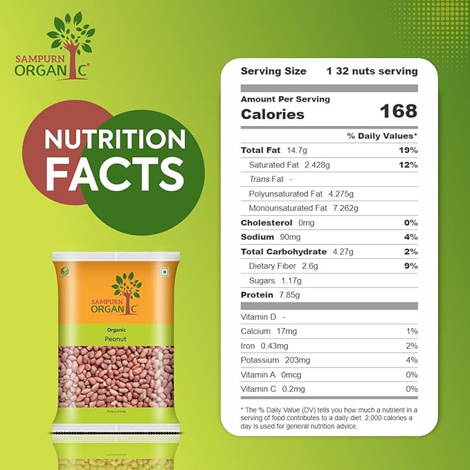 - Pure and Untouched Nutritional Goodness: Our 100% organic peanuts are a testament to pure, unadulterated quality. They are grown naturally, without the use of chemical fertilizers and pesticides. This ensures that you receive peanuts in their most natural and pristine form, free from harmful chemical residues.